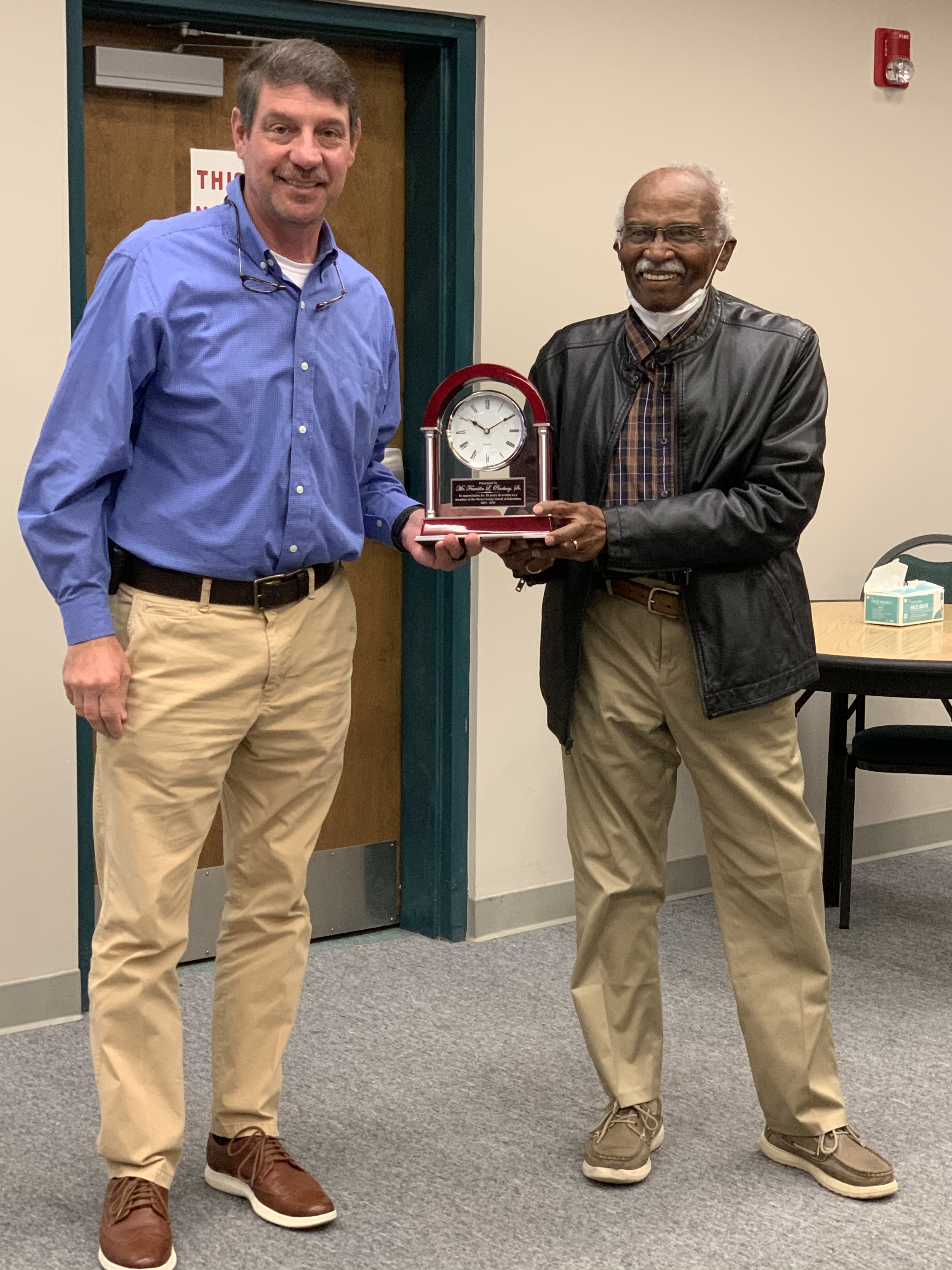 At the December Board Meeting, Board Chairman Dee Meadows and Superintendent Bert Smith recognized two board members who did not seek re-election and are rotating off the board at the end of this month. Mrs. Oneida Oliver-Sanders served 16 years, and Mr. Franklin Pinckney, Sr. served 20 years. The Ware County School System is grateful for their leadership and service.