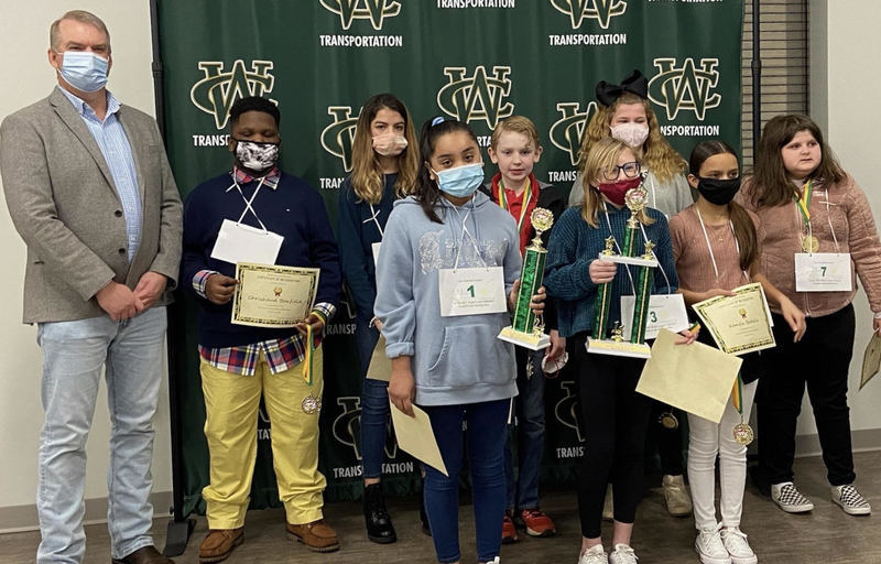The Ware County Schools district spelling bee was held today, and school winners from across the district competed to determine who will represent Ware County in the regional bee February 27th. Abby T. from Waresboro Elementary was the winner, correctly spelling "snorkels" and "lullaby", and Brianna V. from Ruskin Elementary was the first runner-up.