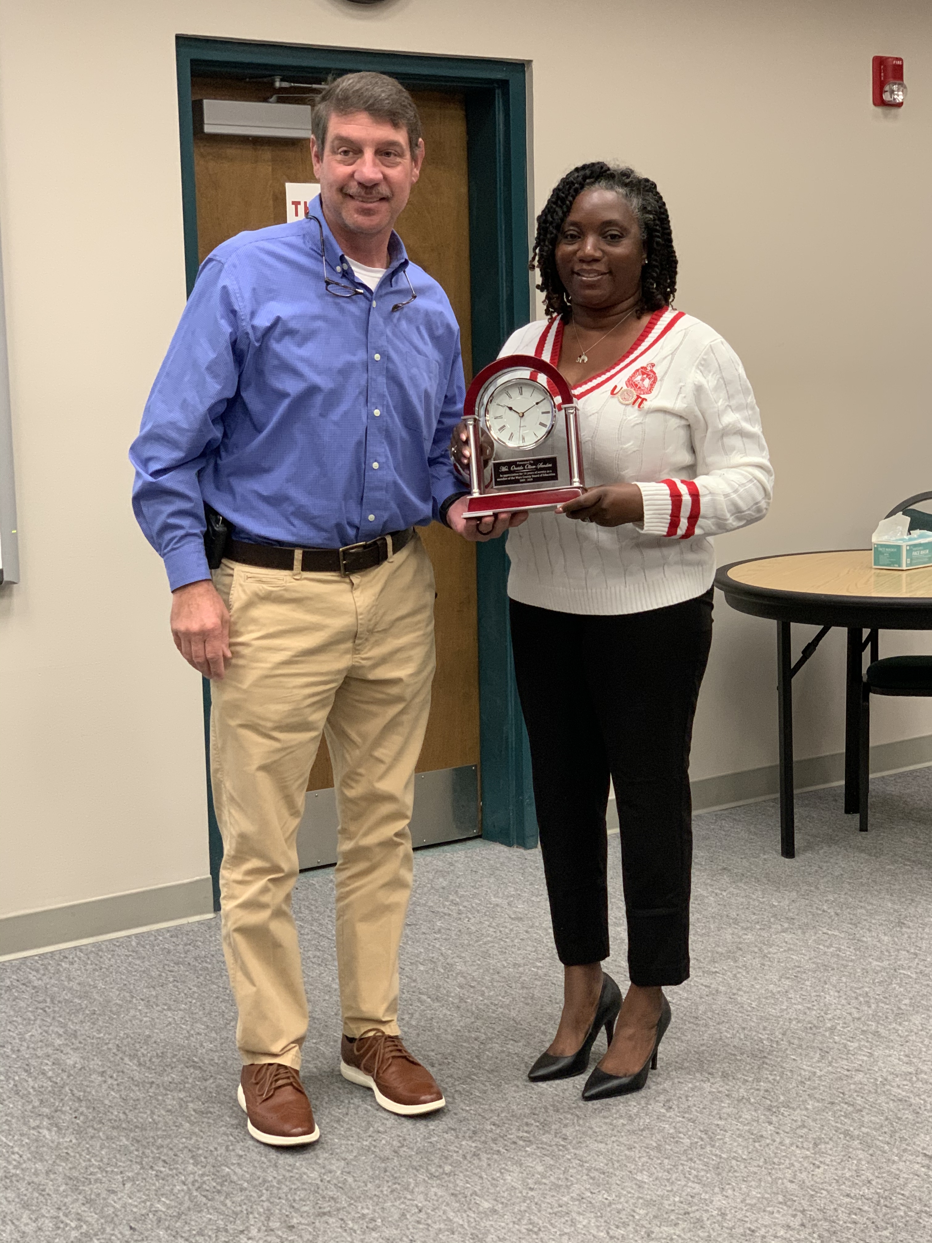 At the December Board Meeting, Board Chairman Dee Meadows and Superintendent Bert Smith recognized two board members who did not seek re-election and are rotating off the board at the end of this month. Mrs. Oneida Oliver-Sanders served 16 years, and Mr. Franklin Pinckney, Sr. served 20 years. The Ware County School System is grateful for their leadership and service.