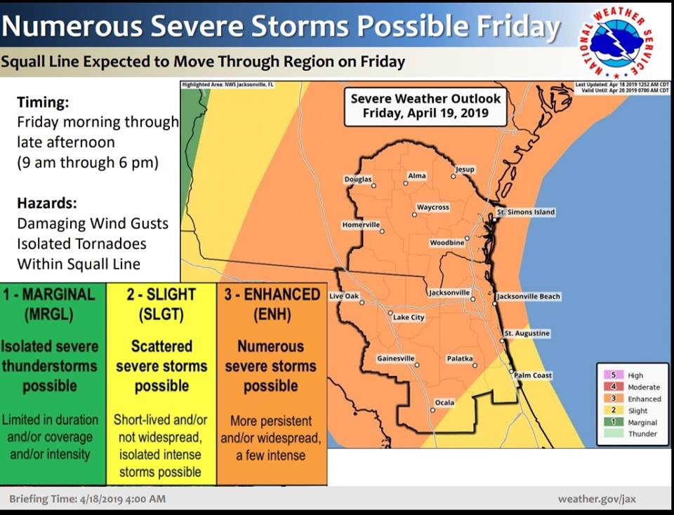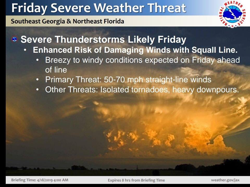Due to the enhanced chance of high winds, tornadic activity, downed trees, and power outages, all Ware County Schools and the Central Office will be closed on Friday, April 19, 2019. Staff will not be required to report. Safety remains our top priority.