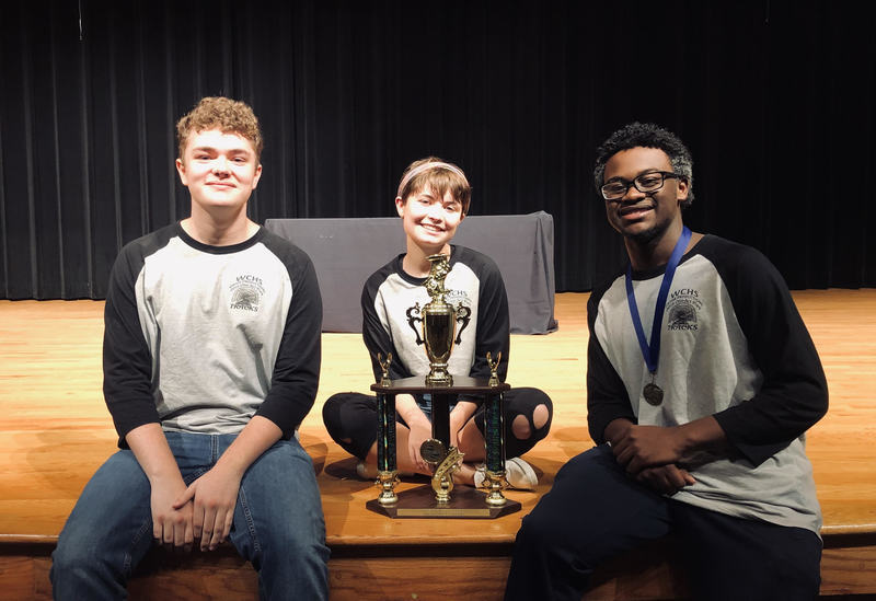 WCHS was proudly represented in Jesup on Saturday, October 26, as Gator Productions claimed 6 region awards for their performance of the one-act play: Tracks. The awards included: Judges' Award for Best Set, Judges' Award for Best Sound and Lighting, and Region Championship. In addition, Mabry R. won Best Supporting Actress of the Region, Peyton S. won Best Supporting Actor of the Region, and Jabari S won Best Actor of the Region.