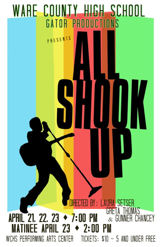 WCHS Gator Productions will present their spring musical, All Shook Up, on April 21, 22, and 23 at the WCHS Performing Arts Center. Evening performances will be at 7:00 pm. A matinee will be performed on April 23 at 2:00pm. Tickets are $10. Children 5 and under are free. Don't miss this exciting event!